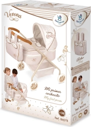 Oplev en charmerende dukkevogn i en blid kombination af beige og hvid med prikker og striber. Den høje kvalitet og spanske design sikrer lang holdbarhed, mens det lave håndtag og den lave vægt gør den let at styre selv for de mindste. Stilen fuldendes af dekorative sløjfer og fine broderier.