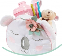 Blide farvetoner med blomstermotiv og den sovende koalas ansigt vil børnene elske ved første øjekast.
