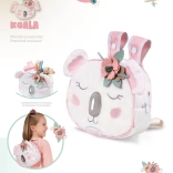 Leder du efter barnets første rygsæk, som både er flot og praktisk? Denne lyserød-hvide rygsæk med motiv af en sovende koala med blomst har kompakte mål, en behagelig tekstiloverflade og nem lynlåslukning. Takket være de justerbare skulderstropper er den komfortabel for børn fra 3 år.