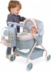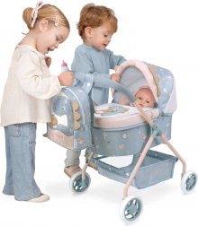 En sød dukkevogn fra COCO-kollektionen med rygsæk vil glæde små omsorgsgivere. Den byder på en stabil konstruktion, nem håndtering og praktiske tilbehør, inklusiv en opbevaringskurv og en madras. De blide farver med motiv af dinosaurmor og unge understøtter kreativ og efterlignende leg.