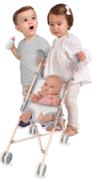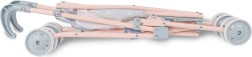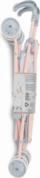 Den robuste metalramme og det slidstærke tekstil i gråblå nuance med sandfarvede og rosa detaljer sikrer lang holdbarhed og sikker brug. Et praktisk sikkerhedssystem mod klemskader beskytter børn ved sammenklapning. Vognen passer til dukker i forskellige størrelser, og takket være den trefunktionssele bliver dukken altid holdt på plads.
