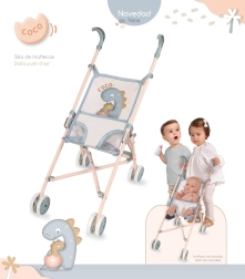 Den legesyge dukkevogn med sødt dinosaurusmotiv fra COCO-kollektionen udmærker sig ved lav vægt og kompakte mål, så den er let at bære og opbevare. Med en håndtagshøjde på 56 cm er den nem at styre for mindre børn og en skøn ledsager til hverdagsleg.