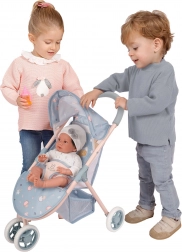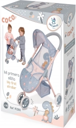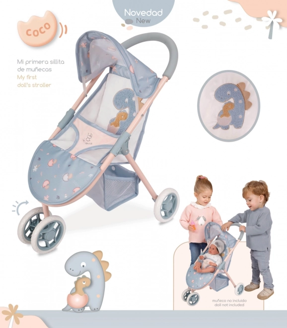 Oplev den søde sportsklapvogn til dukker med motiv af dinosaurmor og unge fra COCO 2024-kollektionen. Den kombinerer spansk design, kvalitetsforarbejdning og lav vægt for behagelig styring selv for de mindste. Den robuste konstruktion i metal, plast og tekstil tåler daglig leg.