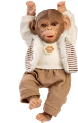 Den søde og realistiske babyabe med blød stofkrop vil glæde både børn og samlere. Den har vinylhoved og -lemmer, er poserbar og kan sættes til at sidde eller hænges i hænder eller fødder. Kvalitets håndlavet produktion i Spanien og gaveæske gør den til en fantastisk gave til børn fra 3 år.