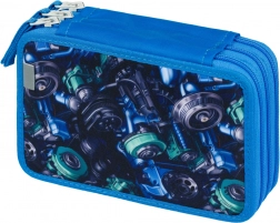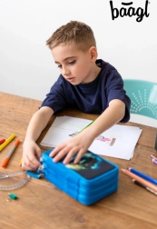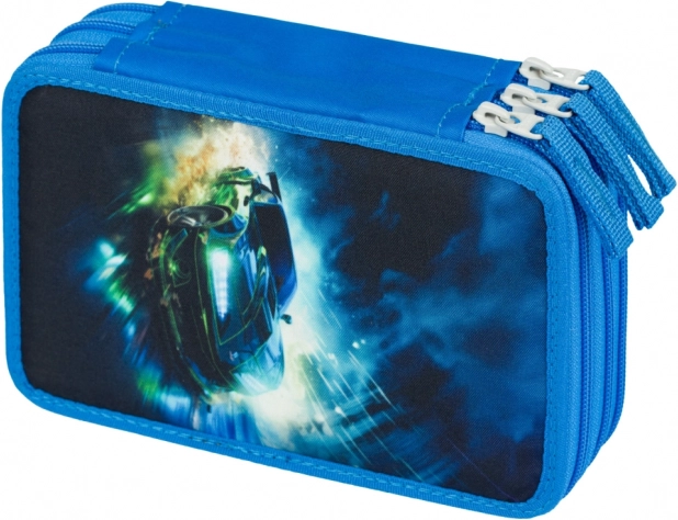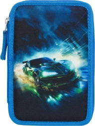 Stor skolepennal Baagl med racerbilmotiv, ideel til sikker og overskuelig opbevaring af alle dine skriveredskaber. Tre-etagers opbygning, holdbare YKK lynlåse og universelle elastikker sikrer komfort og praktisk anvendelse.
