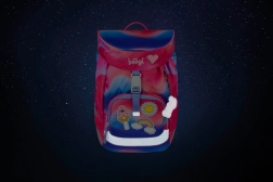 Rygsækken har et enkelt hovedrum, som gør det let at orientere sig, samt en separat lomme til fastgørelse af mapper. Den forreste lynlåslomme er ideel til sikker opbevaring af madkassen, mens sidelommer med elastik sikrer, at flasker ikke falder ud. Magnetlukning gør håndteringen nem selv for de mindste børn.