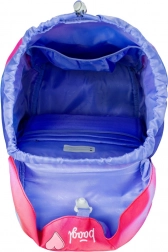 Rygsækken er udstyret med bryst- og hofteremme for jævn fordeling af vægten og aflastning ved tungere indhold. Den praktiske indretning med ét hovedrum og en mappe-lomme giver bedre organisering, mens den forreste lynlåslomme beskytter skolemadpakker. Reflekterende elementer øger sikkerheden i trafikken.