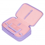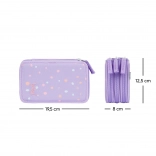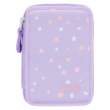 De gennemtænkte elastikker er designet til komfortabelt at rumme selv kraftigere farveblyanter og tuscher. Penalhuset er fremstillet af slidstærkt tekstilmateriale, og det legende prikkede design i lilla nuancer passer perfekt til ethvert skolesæt. Leveres uden indhold, så du kan tilpasse det præcis som du vil.