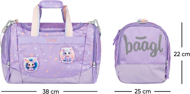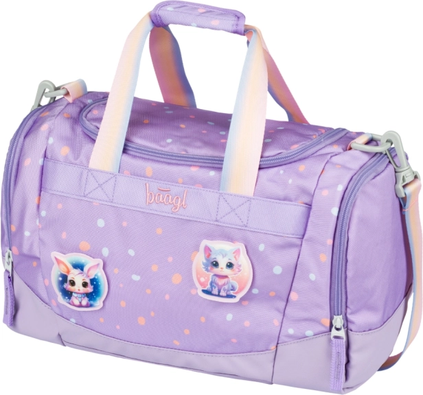 Børnesportstasken Baagl Mazlíčci kombinerer legende design med praktiske detaljer til hverdagsbrug. Det brede låg gør det nemt at pakke og pakke ud, og det separate skorum holder resten af tingene rene og overskuelige. Den lette konstruktion sikrer komfortabel bæring – også for mindre børn.