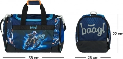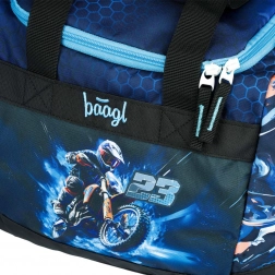 BAAGL sportstaske til børn Motorcykel kombinerer kompromisløs funktionalitet med et attraktivt design. Den brede åbning til den rummelige hovedlomme gør det nemt for børn at pakke tøj, drikkeflaske og sportsudstyr. Den separate skot lomme holder resten rent og overskueligt, mens en lille lomme til småting er perfekt til nøgler eller penge.