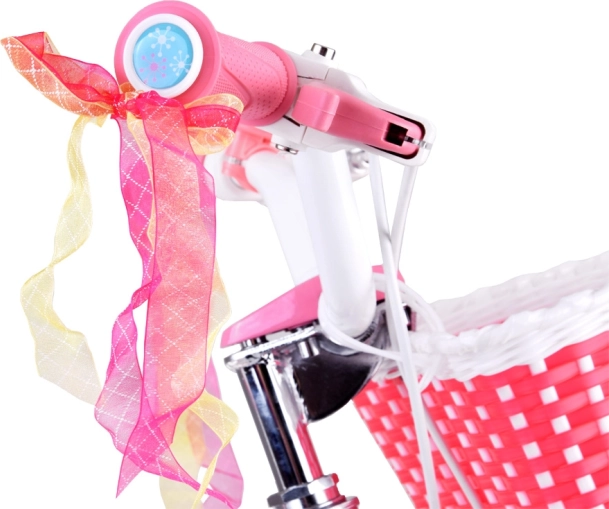 Rosa-hvidt look med kurv og frynser på styret motiverer børn til at cykle og lærer balance på en legende måde.
