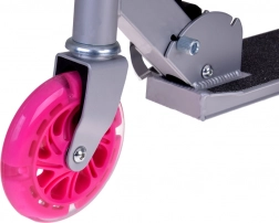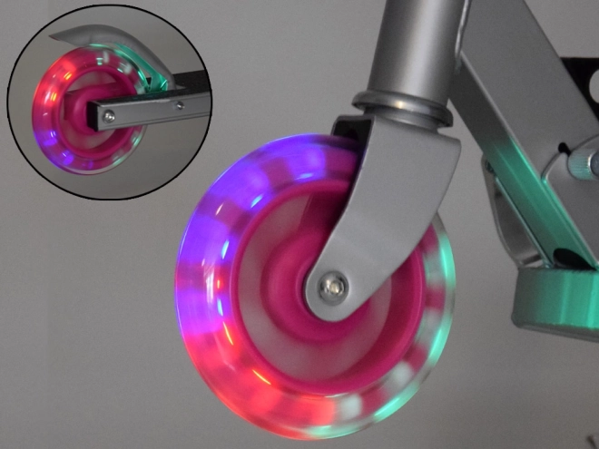 Dette sammenklappelige børneløbehjul kombinerer lav vægt, stabilitet og sikkerhed. Hjulene lyser takket være indbyggede LED-dioder under kørsel uden behov for batterier, hvilket øger synlighed og attraktivitet. Den aluminium-stålkombinerede konstruktion er robust og samtidig let at bære, så den passer til park, cykelsti og ferie.