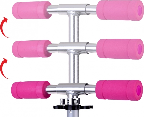 Højden tilpasses nemt i tre trin (ca. 62/77/88 cm). Bløde skumhåndtag sikrer et sikkert og behageligt greb.