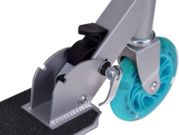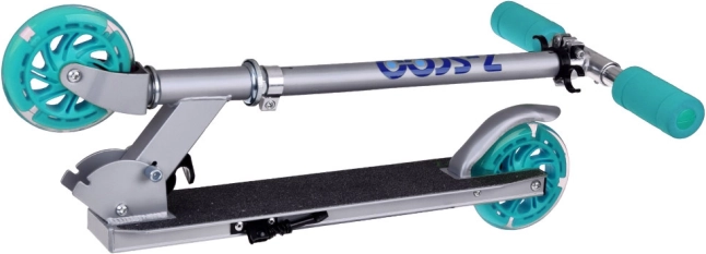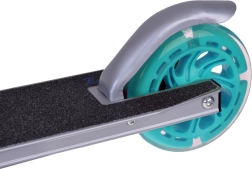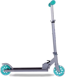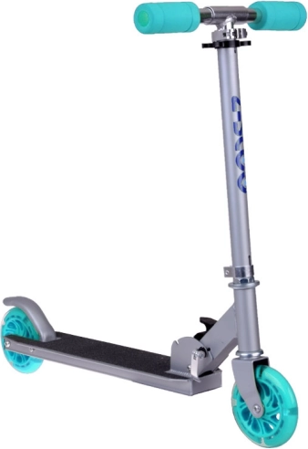 Dette sammenklappelige børneløbehjul kombinerer lav vægt, robust metalramme og et legende design med turkise detaljer. Takket være LED-hjulene, som lyser under kørsel og ikke kræver batterier, er barnet mere synligt, og hver tur bliver sjovere.