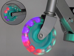 Gennemsigtige turkise hjul lyser op under kørsel og forbedrer både synlighed og køreglæde. Lysene drives af magnetisk energi fra rotationen, ingen batterier er nødvendige.