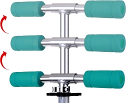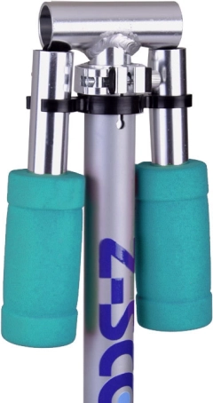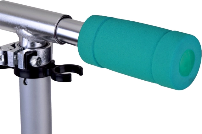 Teleskopstang med flere højdepositioner vokser med barnet. Bløde skumgreb giver et sikkert og komfortabelt greb.