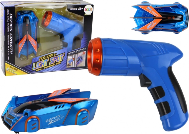 Med den blå bil, der kombinerer fascinerende design med revolutionerende teknologi, bringer du legen til et helt nyt niveau. Den er i stand til at køre på vægge og lofter og overvinder dermed tyngdekraften. Styringen sker via laser - ret LED-lyset i den retning, du ønsker, og bilen kører dertil med det samme.