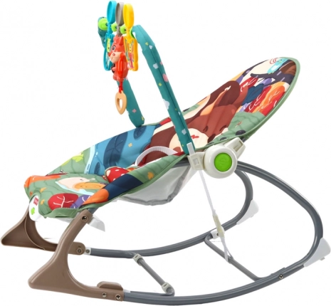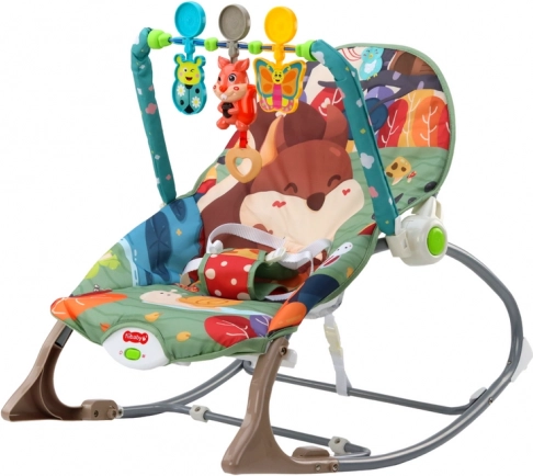 Gyngestol og liggestol 2-i-1 er det ideelle valg til daglig hvile og legende stimulering af baby. De blide vibrationer hjælper med at falde i søvn og beroliger, mens de hængende legetøj på bøjlen understøtter visuelle og motoriske færdigheder. Når du trækker i hjertet på ræven, starter en glad melodi, som udvikler hørelsen og barnets naturlige nysgerrighed.