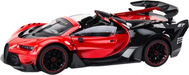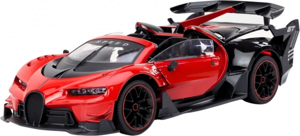 Oplev fuld fart med den røde RC sportsvogn i skala 1:12. Det realistiske look, den præcise udførelse og interaktive funktioner som åbning af døre og bagagerum giver en autentisk køreoplevelse. Controlleren i rat-form på 27 Hz muliggør intuitiv styring, mens lys og lyde forstærker køreoplevelsens atmosfære.