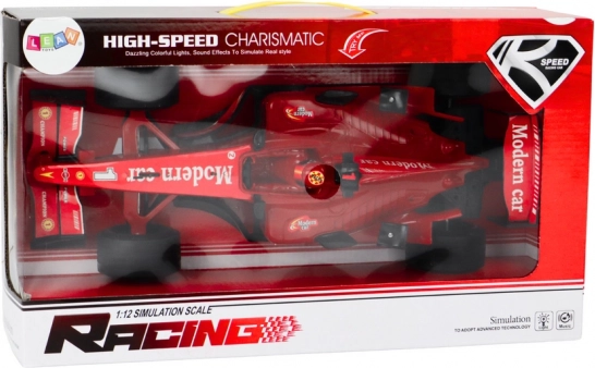Stilfuld rød racerformel i skala 1:12, som glæder både små og store fans af hurtige hjul. Den byder på realistisk udseende, mekanisk træk uden batterier, racerhjul og spoilere samt iøjnefaldende lys- og lydeffekter for endnu mere sjov.