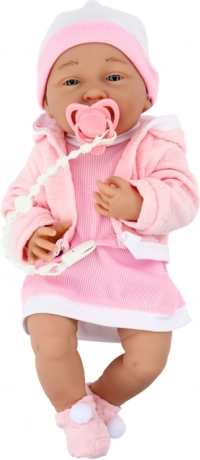 Denne søde dukke er fremstillet af sikre og holdbare materialer, hvilket sikrer tryg leg for børn. Hendes realistiske træk og fine ansigtsdetaljer gør hende meget attraktiv for de mindste og stimulerer deres empati og ansvarsfølelse.