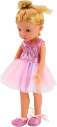 Denne dukke på 33 cm er ideel til leg og til samlere. Hun har langt, blond hår sat i en stilfuld knold, hvilket matcher udseendet af en ægte ballerina. Hun er klædt i en rosa, glitrende kjole med en svajende nederdel, der glimter smukt i lyset. Derudover har hun rosa, skinnende sko, som passer perfekt til hendes danseoutfit.