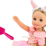 Elegante lyserøde kjole, pyntet med hvide prikker og gyldne accessories, gør denne dukke til det perfekte valg til enhver anledning. De lyserøde sko passer perfekt til kjolen.