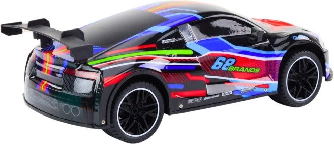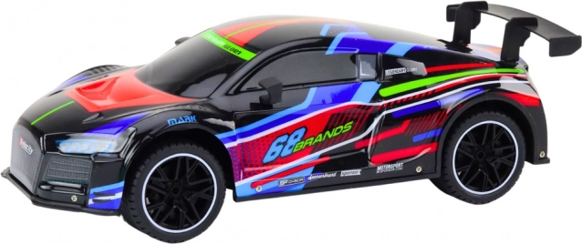 Få adrenalinen til at pumpe med en RC sportsvogn i skala 1:10, der når en topfart på op til 25 km/t. Elegant sort design med røde og blå accenter, LED-lys til kørsel i skumring og gummidæk med affjedring for bedre greb og kontrol. Stabil styring sikres af 2.4G fjernbetjening med hurtig respons.