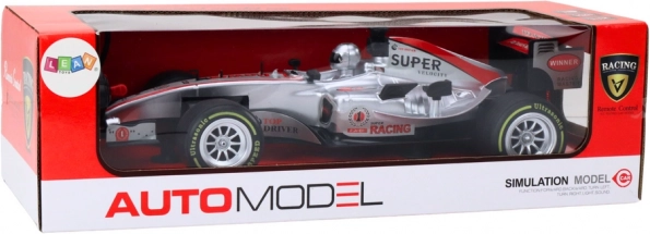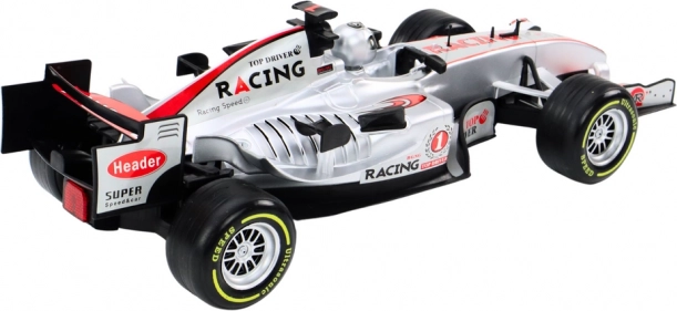Denne sølvfarvede racer er designet til maksimal sjov og en realistisk køreoplevelse. Den sportslige spoiler, det detaljerede karrosseri og de markante dekorer vækker stemningen fra ægte F1-løb. Responsiv og præcis fjernstyring giver nemme manøvrer selv ved højere hastigheder.