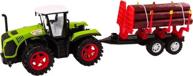 Den grønne traktor med røde hjul og trailer til træstammer giver et autentisk look af landbrugsmaskiner og stimulerer fantasifuld leg.