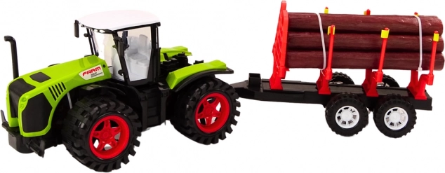 Denne robuste gårdtraktor med trailer er ideel til små fans af landbrugsmaskiner. Takket være detaljeret udførelse, store hjul og en funktionel træstamme-trailer virker den meget realistisk og inspirerer til kreativ leg.