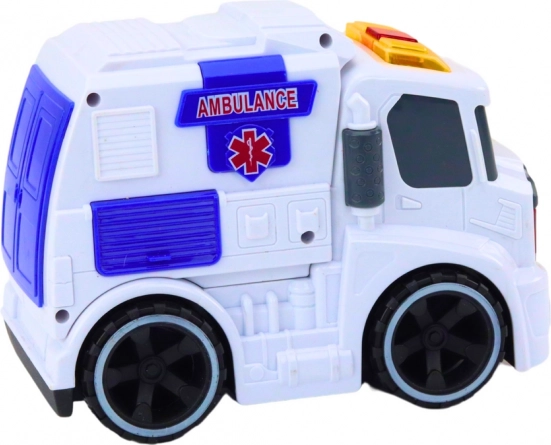 Ambulancen afspiller sirene- og motorlyde og blinker som et ægte udrykningskøretøj – perfekt til spændende leg.