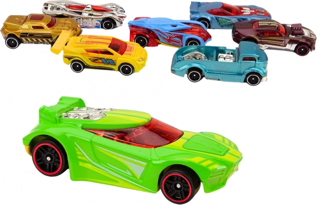 I pakken finder du 8 forskellige små metalbiler, så børnene kan begynde at køre løb med det samme. Klare farver og holdbare plastdele sikrer lang levetid og masser af legescenarier hjemme og på farten.