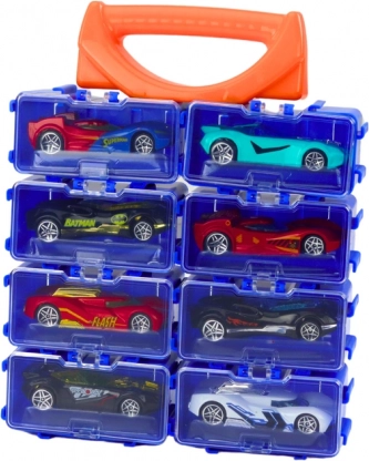 Oplev sjov på farten med et sæt på 8 metalbiler opbevaret i en praktisk kuffert. Hver bil har sin egen stil og farver, og kufferten med skillevægge sikrer orden og nem transport. Ideel til små bilentusiaster fra 3 år, med CE-certificering og EN71-standard.