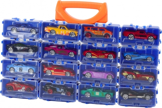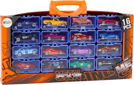 Oplev sjov på farten med en sæt metalbiler i en praktisk kuffert. I pakken finder du 16 farverige biler i unikke stilarter, som stimulerer fantasien og samlerglæden. Den robuste kuffert med håndtag og aftagelige rumdelere holder alt overskueligt organiseret og klar til leg med det samme. Et sikkert valg for børn fra 3 år med CE-certificering og overensstemmelse med EN71.