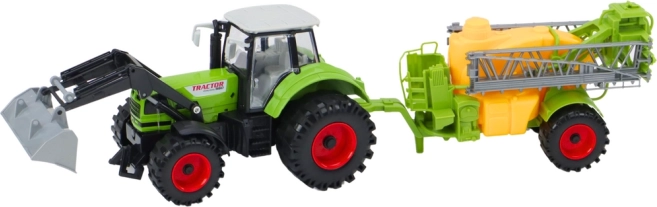 Traktor med læsser og sprøjte grøn
