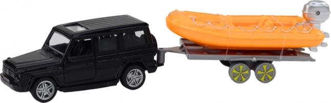 Båden er udstyret med en realistisk motor, mens bilen og traileren er designet til robust leg.
