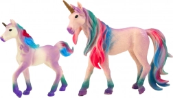Et fortryllende sæt med to enhjørninger – en voksen og et føl – i elegant lilla farve, som vil glæde både børn og samlere. Figurerne i kvalitetsplast har omhyggeligt udførte detaljer, realistiske teksturer og farverige maner og haler, hvilket gør dem til en smuk dekoration og inspiration til kreativ leg.