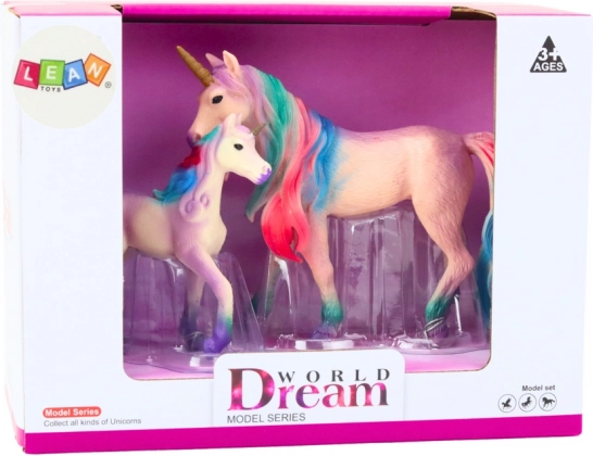 - 2 figurer i pakken: voksen enhjørning og føl