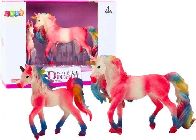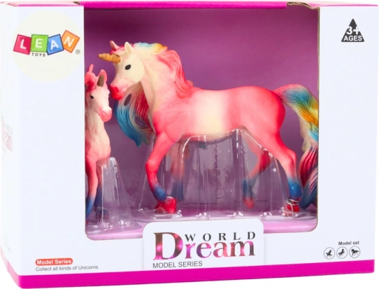 Fortryllende sæt med to lyserøde enhjørninger – en voksen og et føl – til magisk leg og som pynt. Realistiske detaljer, farverig man og hale, holdbar udførelse og CE-, EN71-certificering sikrer tryg underholdning for børn fra 3 år.