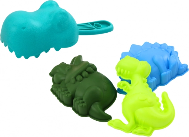 Sættet indeholder tre farverige forme i dinosaur-figurer, så børn kan skabe sandscener og eventyr med forhistoriske væsner. Formene stimulerer fantasien og beriger legen.