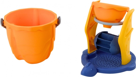 Sien fungerer som låg til spanden og gør det nemt at adskille sand fra vand. På sien er der fastgjort en mølle, som gør legen interaktiv og lader børn se, hvordan sandet bevæger sig gennem møllen og sætter den i gang.