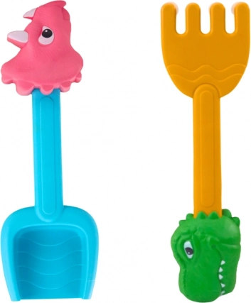 Praktisk sæt redskaber med legende motiver. Børn kan nemt grave, jævne sandet og skabe solide fundamenter til byggerier.