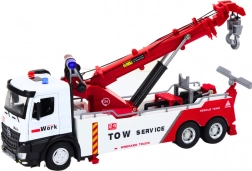 Denne autotransporter med kran er et fremragende valg til kreativ børneleg. Den robuste kabine i metal, den detaljerede udførelse og gummihjulene sikrer holdbarhed og jævn bevægelse på forskellige underlag. Takket være friktions-/skubbe-drev kører bilen let fremad.