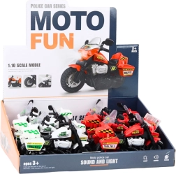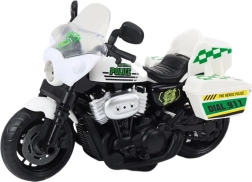 En miniatyrmodel af en politimotorcykel i skalaen 1:10 tilbyder realistiske lys- og lydeffekter, der støtter fantasien og kreativiteten under legen. Legetøjet fås i to farver: hvid og rød. Vælg farve ved køb, ellers vælges tilfældigt.