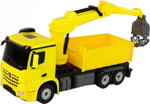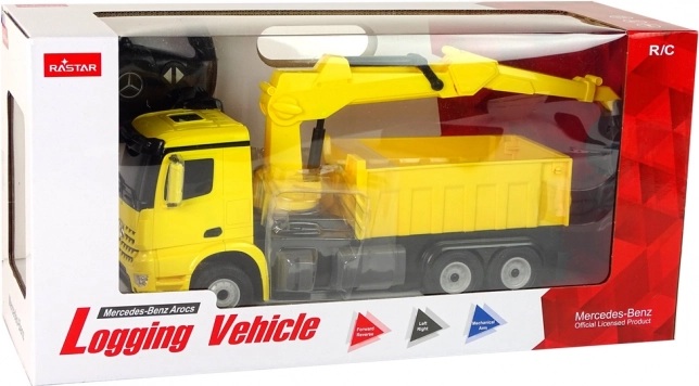 Den realistiske RC-lastbil MERCEDES-BENZ Arocs fra Rastar i klar gul giver børn timevis af sjov. Den tilbyder et roterende og højdejusterbart grab, lyseffekter og jævn kørsel på gummihjul. Med fjernbetjening kan den køre frem/tilbage og dreje, og den udvikler finmotorik og kreativitet.