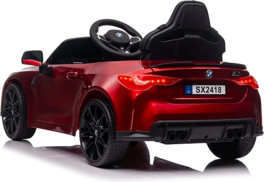 Det stilfulde elektriske legebil BMW M4 i lakeret rød farve byder på et realistisk look, sportslige detaljer og sjov kørsel for små chauffører. Takket være den holdbare konstruktion og gennemarbejdede elementer som lys, rat og åbnefunktioner er den et ideelt valg til sikker og attraktiv leg både inde og ude.