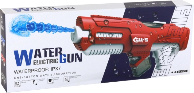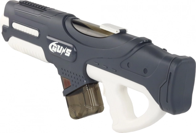 Påfyldning er yderst nemt: Du kan nedsænke løbet i vand eller bruge det øverste påfyldningshul. Pistolen drives af et 7,4 V batteri (inkluderet) og leveres med original oplader til hurtig genopladning. Kvalitetsplast sikrer holdbarhed og lang levetid.