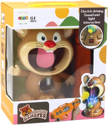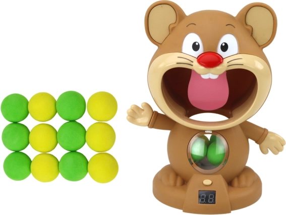 Sættet er meget nemt at bruge. Lad pistolen med bløde kugler, og sigt derefter mod hamsterens mund. Når du rammer hamsterens tunge, afgiver spillet en lyd, der bekræfter træfferen, og på det lille LCD-display kan du se dine resultater registreret som point. Sættet inkluderer også en pistol og særlige bløde bolde til timevis af sjov.