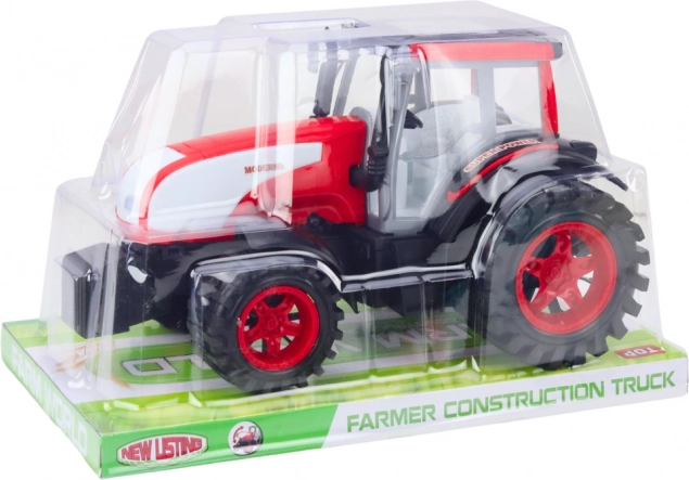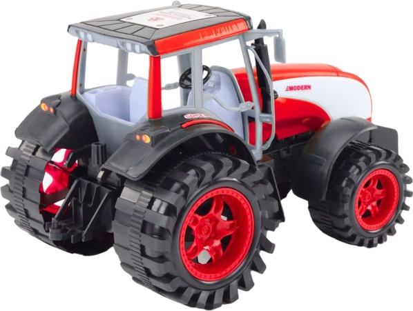 Detaljeret kabine, massive hjul og den kontrastfyldte røde farve giver et autentisk udtryk af en rigtig traktor.